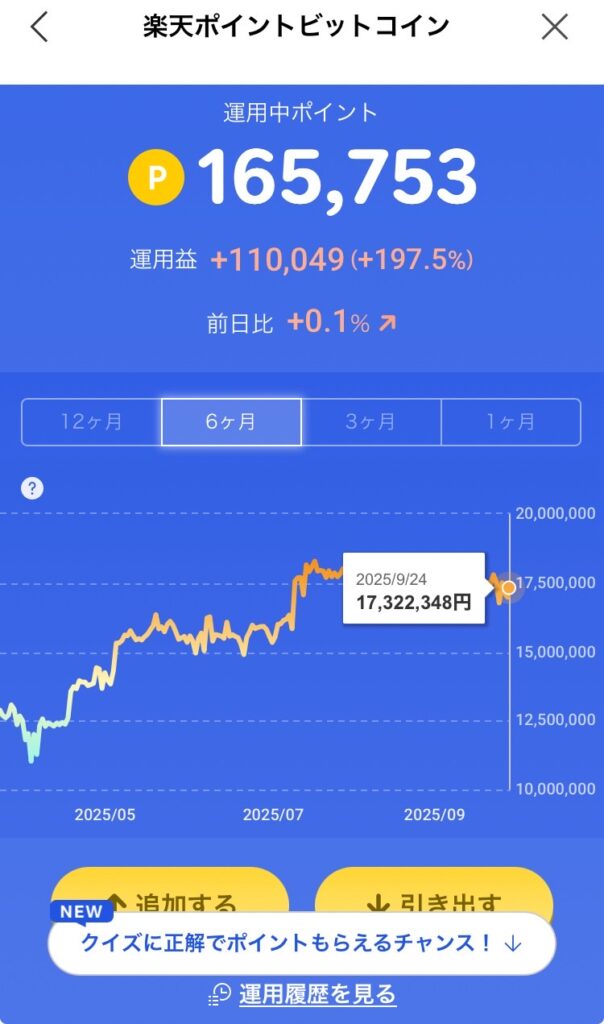 ※2025/9/28 07:45 運用中ポイントの例 165,753ポイント(追加済 55,704ポイント、運用益+110,049ポイント)